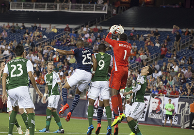 The Revs were the first team to get on the attack as Kelyn Rowe stepped in front of a Timbers clearance attempt in the 12th minute. The rebound off of Rowe landed at the feet of Teal Bunbury in the box. Bunbury made a shot attempt but Portland goalkeeper Donovan Ricketts stepped in front for the save.