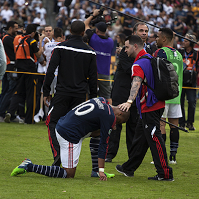 The Revolution had to play the majority of the game with 10 players after Je-Vaughn Watson was thrown out of the game for a studs-up challenge on Roland Alberg.
