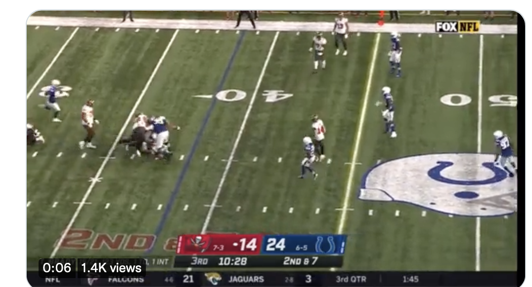 @OfficialKwity with a sack on Tom Brady in today’s game of the Colts vs the Buccaneers! pic.twitter.com/6LartJi5Qq