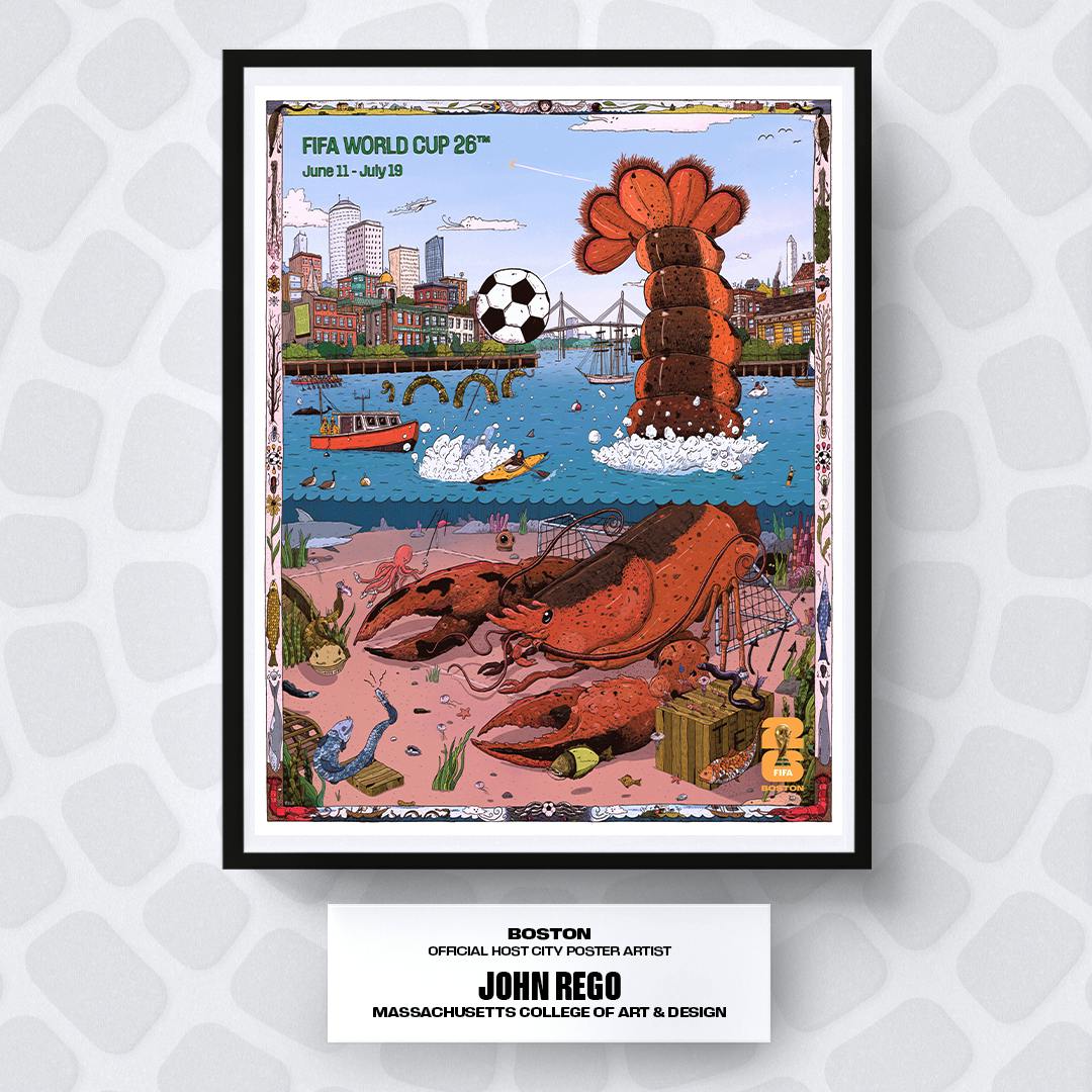On Tuesday, FIFA announced that Rego's design in collaboration with the Massachusetts College of Art & Design (MassArt) was selected as the Official FIFA World Cup 26 Boston Host City Poster.