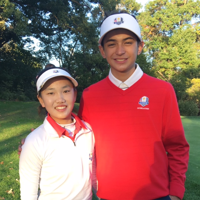 Patrick Welch and partner Lucy LiThe Junior Ryder Cup began on Monday, September 26 with two sessions, one in the morning and one in the afternoon.