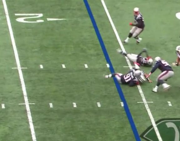 This strip sack got the Patriots off to a good start against the rival Jets in what ended up being a close game. This is just one play, but the defense has made plays all season despite the massive losses in the off season.