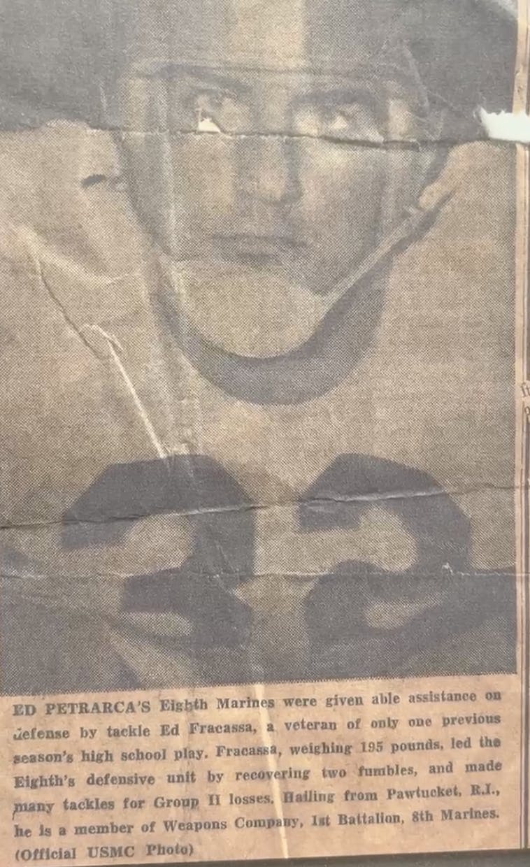 Shea remembered Fracassa, took an interest in him (and Fracassa’s best friend Robert Rainville, who had also returned from the Marine Corps with Fracassa), and helped Fracassa complete his high school education.