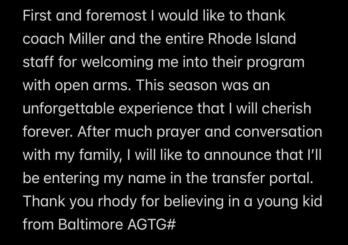 Cam Estevez, a sophomore URI guard who averaged 4.5 points per game, has announced he is entering the portal.