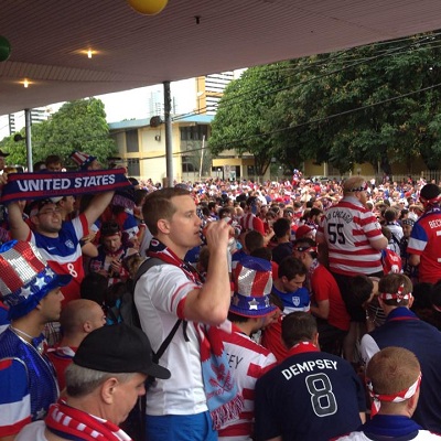 My group attended the US Soccer "Night Before" Party the day before the game. There were between 1,000-2,000 people there. Overall, it was a great event that started with watching Bosnia Herzegovina vs. Argentina on the big screens set up throughout the venue. Then there was some chanting led by Sunil Gulati and various music performers who had to contend with US supporters chanting and cheering during the music.